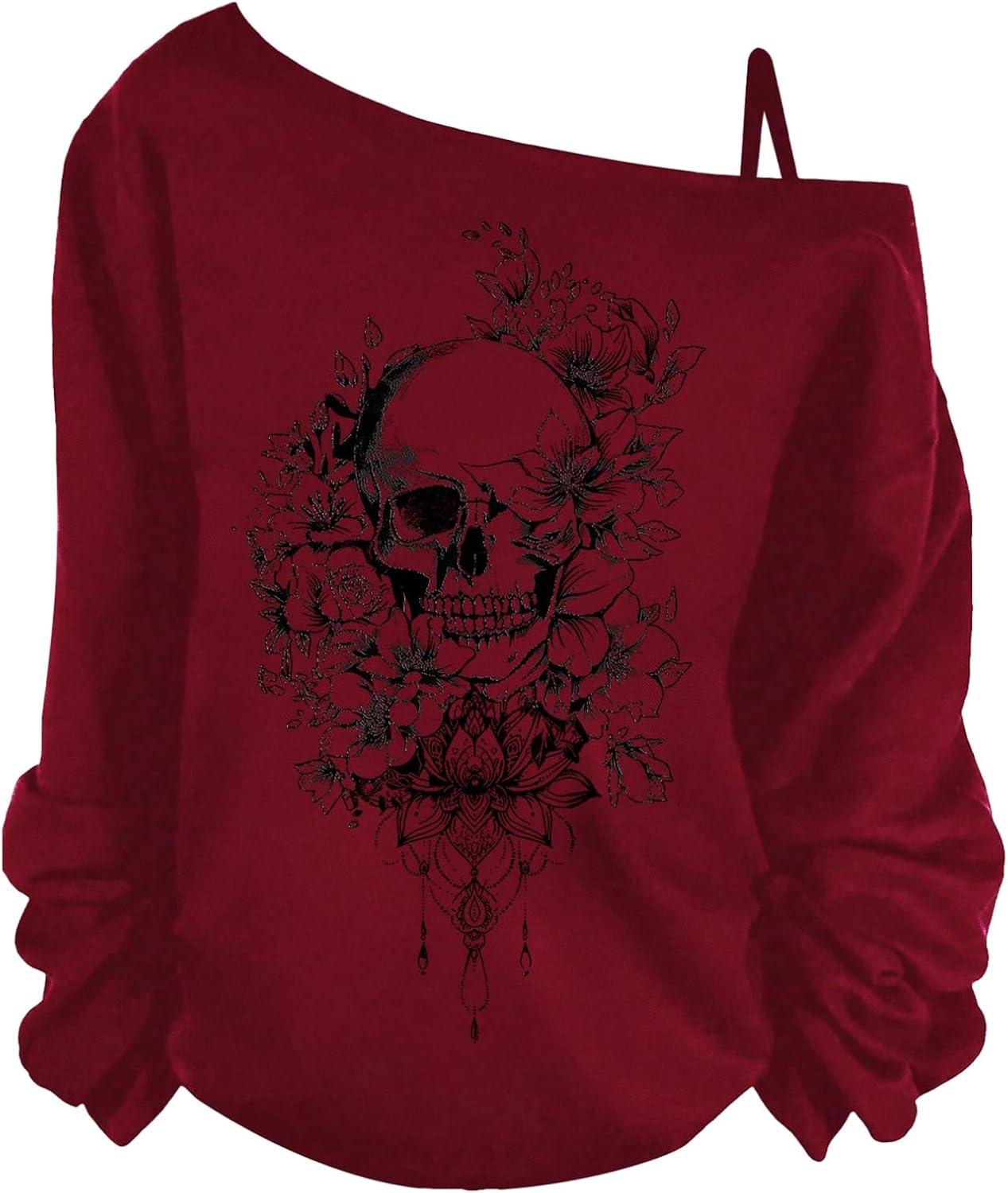 SHENHE Women's Plus Size Y2k Off The Shoulder Long Sleeve Graphic Print Goth Grunge Top Fall Shirt