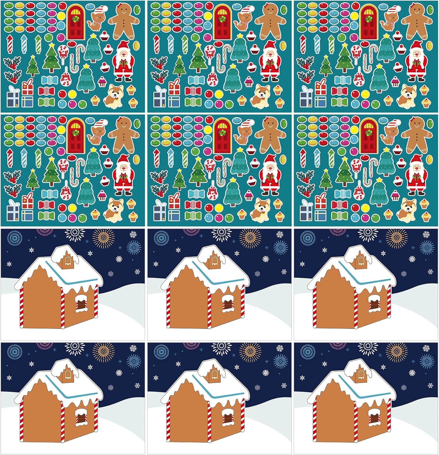 - Valuable Package: Package including 12 sheets christmas stickers. 6 sheets Gingerbread House Stickers and 6 sheets colorful gingerbread house patterns, like Christmas trees, candy canes, santa claus, gingerbread man, etc... You can finally complete 15 finished gingerbread house stickers.