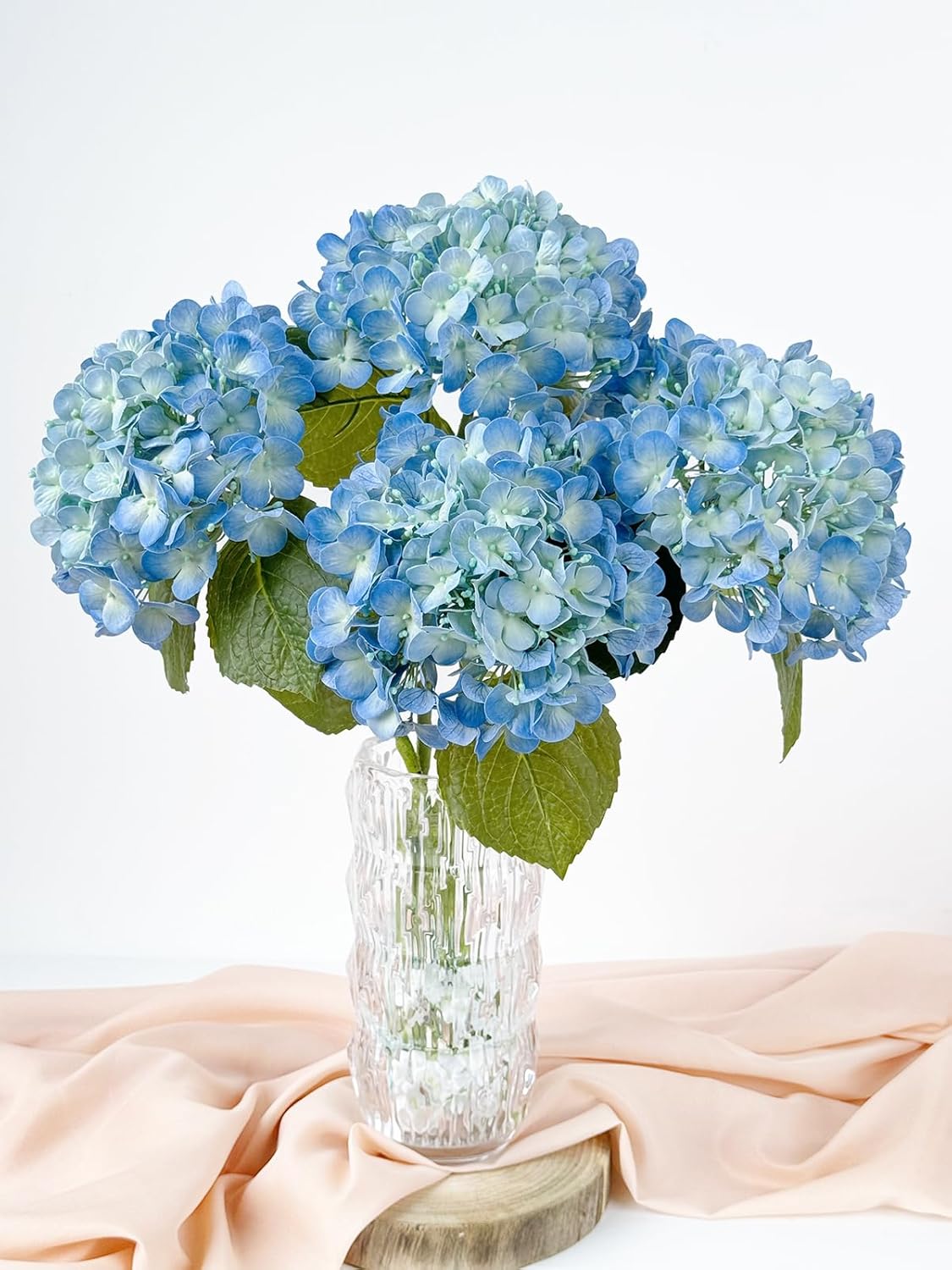 - Dimension & Package : Total length: 20 inches, the diameter of flower head: 7.8 inches, the length of flower head: 4.1 inches; Package : 4 Pcs Blue Hydrangeas ( Vase not included)