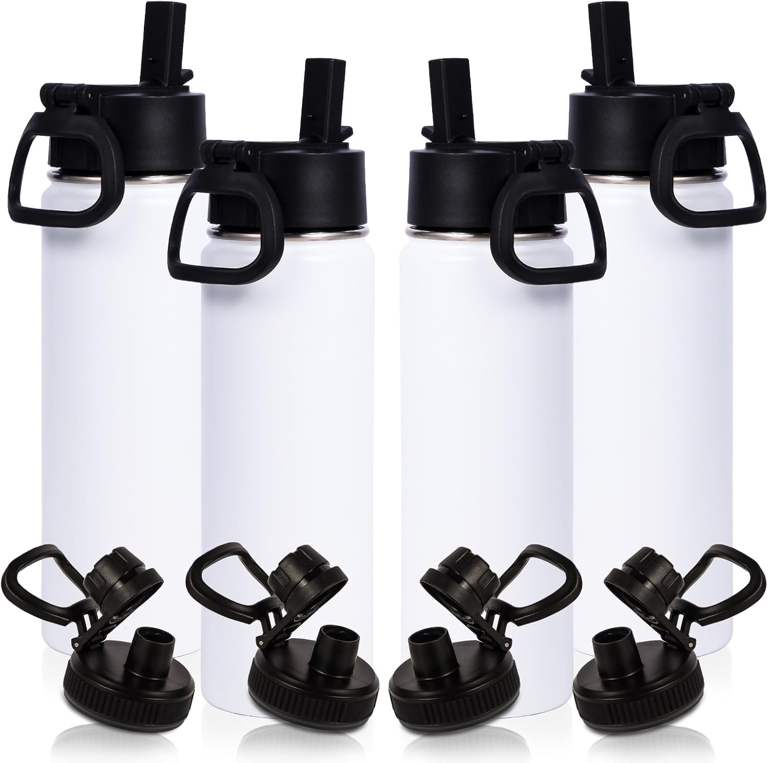 Volhoply 20oz Insulated Stainless Steel Water Bottle With Straw Lid Bulk 4 Pack,Not Suitable for Sublimation,Kids Double Wall Vacuum Cups with Handle,Reusable Outdoor Sports Metal Bottles(White,4)