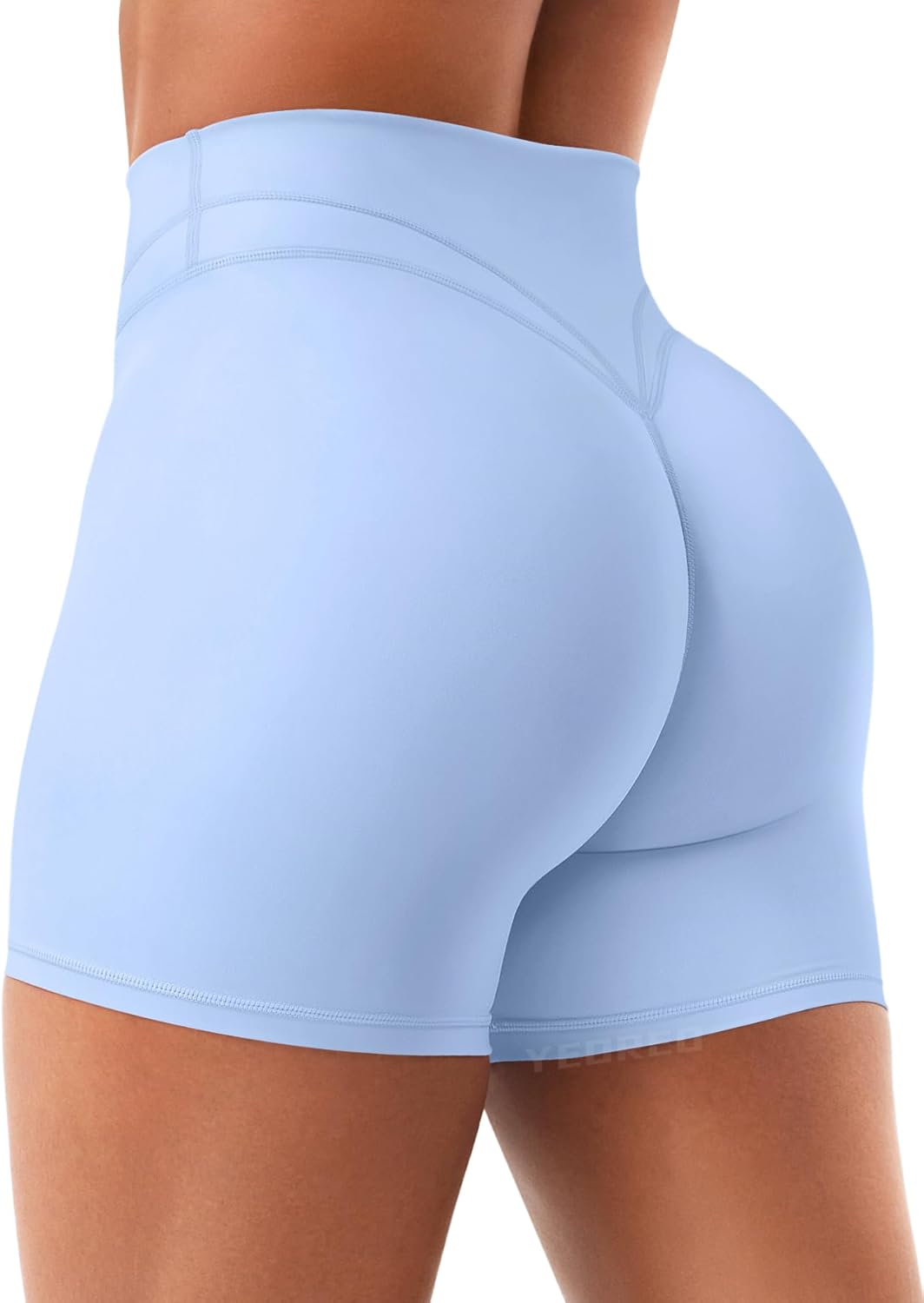 YEOREO Women Workout Yoga Shorts 4.5" No Front Seam Hidden Scrunch Almiy High Rise Buttery Biker Shorts