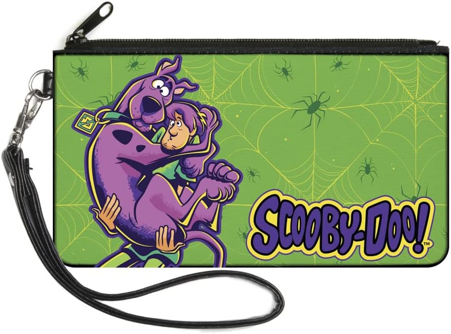 Wallet Canvas Zip Pouch Scooby Doo Shaggy Carrying Scooby Pose and Spider Webs Greens