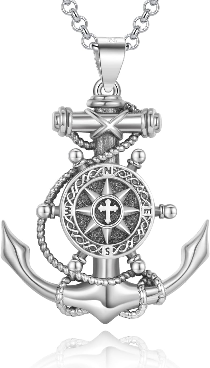 LES OSEWA Compass Necklace for Men Sterling Silver Compass Pendant Masonic Viking Necklace Travel Amulet Necklace Inspirational Graduation Jewelry Gifts for Women