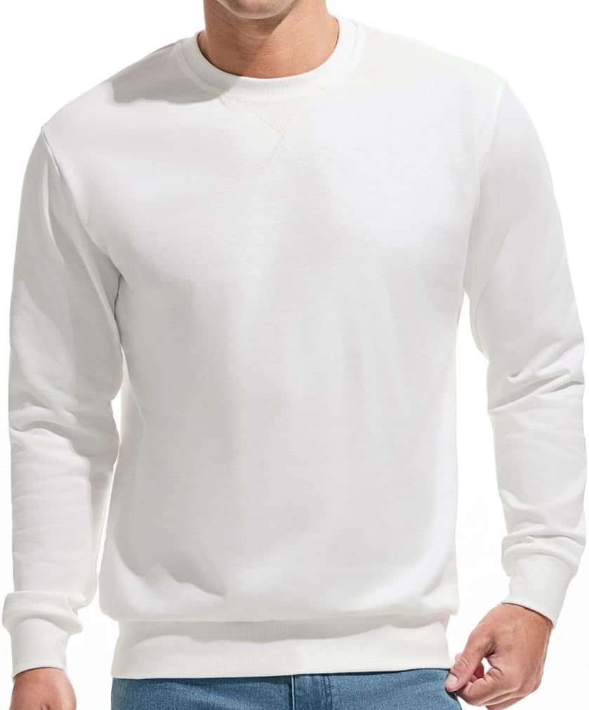 VEIISAR Men's Crewneck Sweatshirt - Basic Long Sleeve Pullover for Casual & Athletic Wear (616 White S)