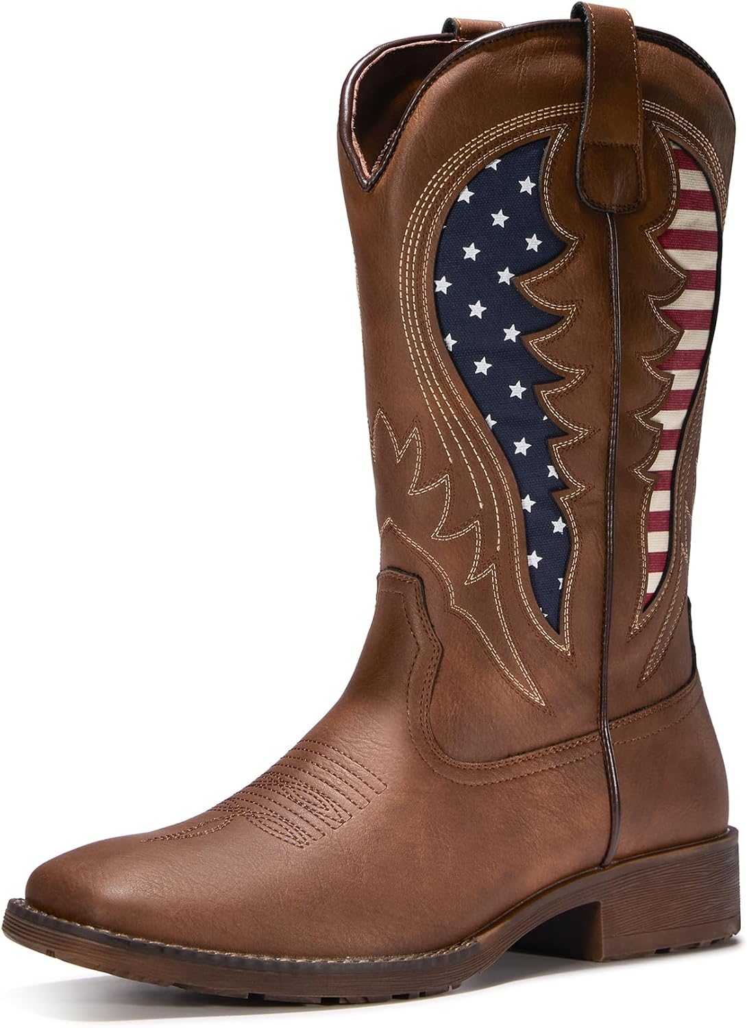 Cowboy Boots For Men,Durable Classic Fashionable Embroidered Western Boots Slip-On Retro Square Toe Country Pull On Resistant Boots
