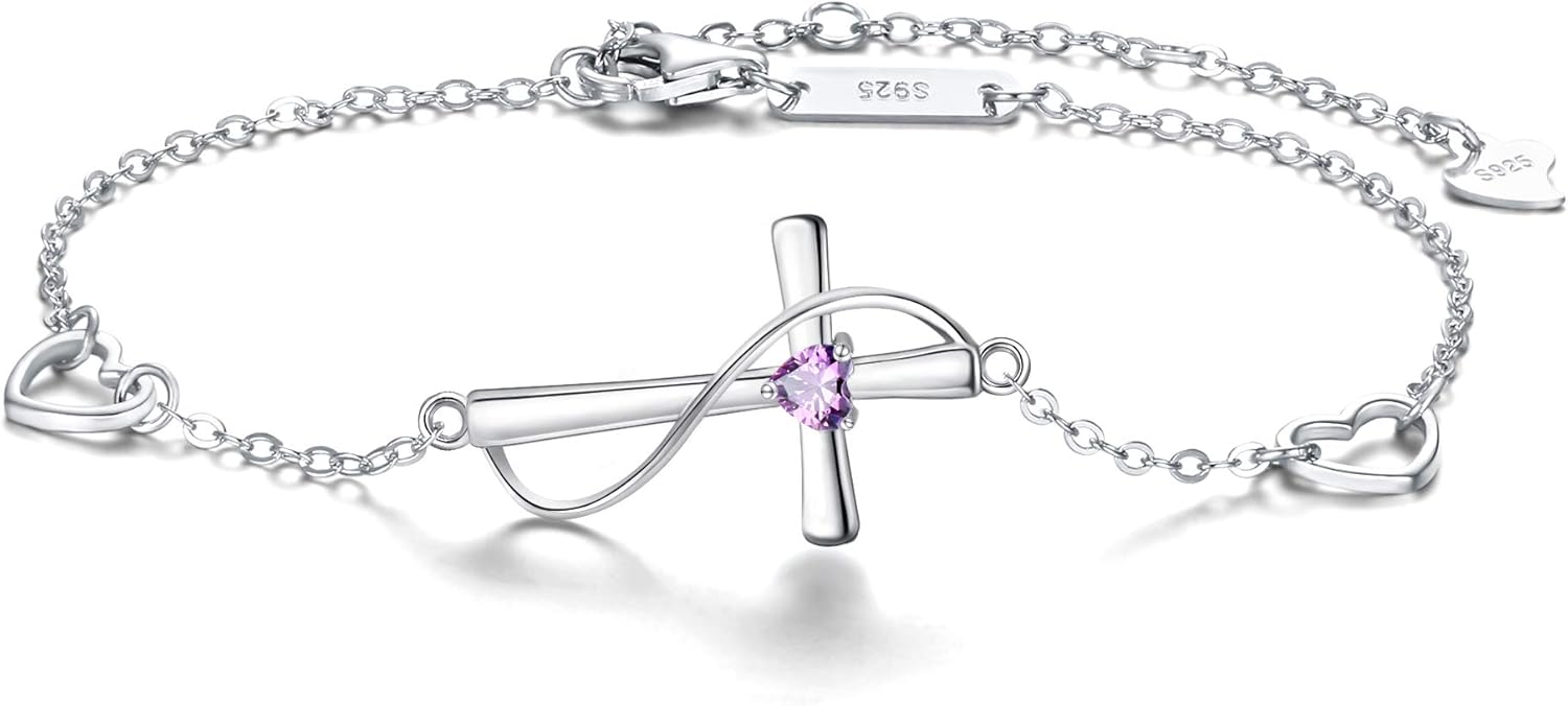 FANZE 925 Sterling Silver Cubic Zirconia Timeless Faith Love Link Cross Bracelets for Women Dainty Trendy Jewelry Gift for Anniersary Birthday Valentines Chrismas Mother's Day