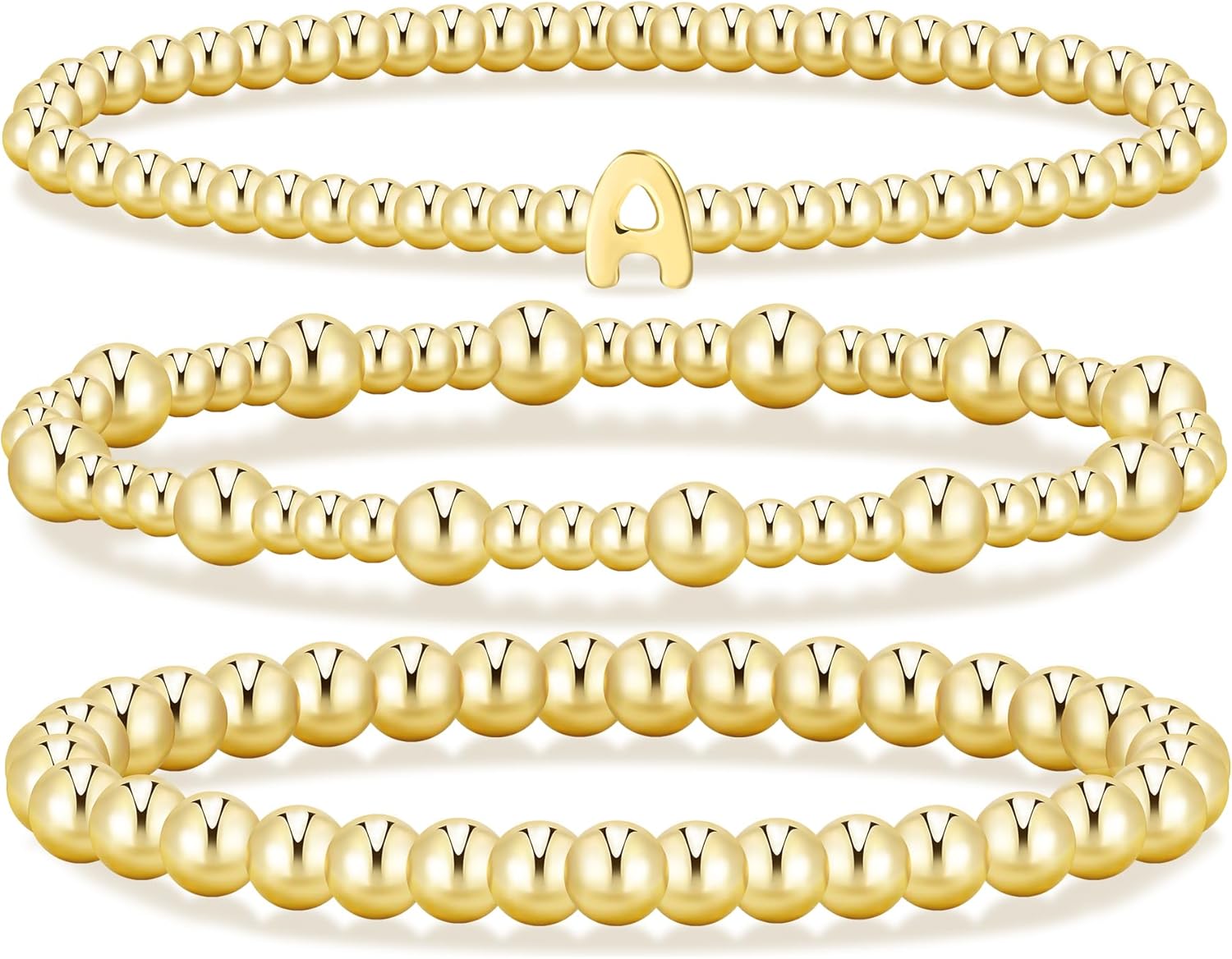 Gold Initial Bracelets for Women, 14K Gold Plated Beaded Bracelets Gold Stretch Bead Ball Bracelet stack Set Adjustable Bracelet Set Jewelry