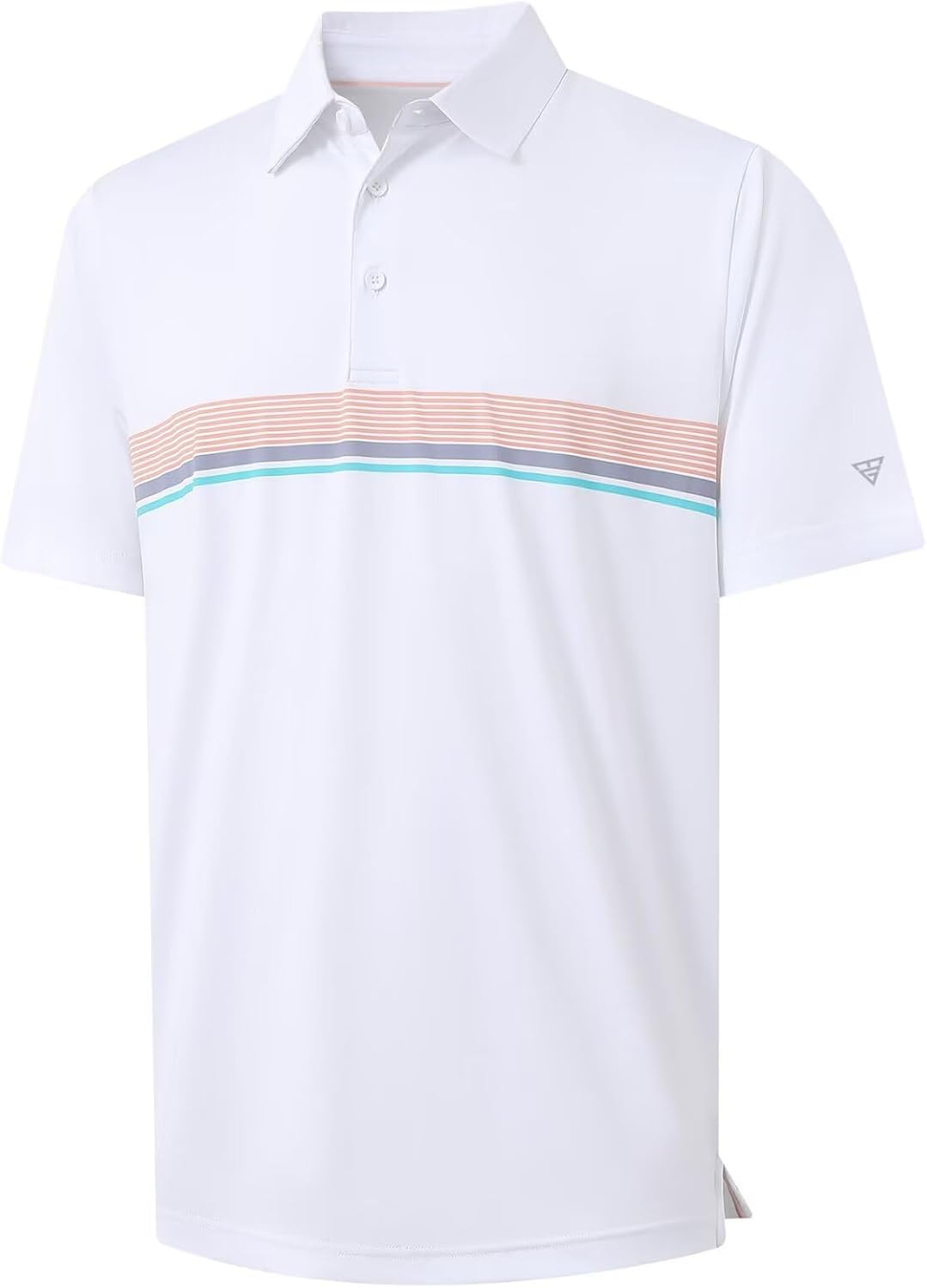 M MAELREG Golf Shirts for Men Short Sleeve Regular Fit Moisture Wicking Performance Casual Striped Print Mens Polo Shirts