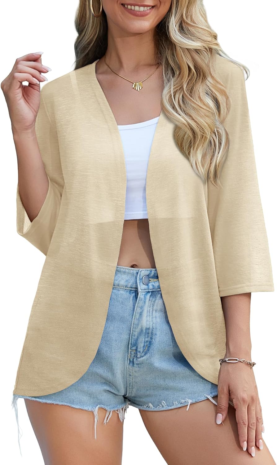 CZYINXIAN Women's Casual 3/4 Sleeve Cover Up Summer Lightweight Open Front Curved Hem Soft Cardigans