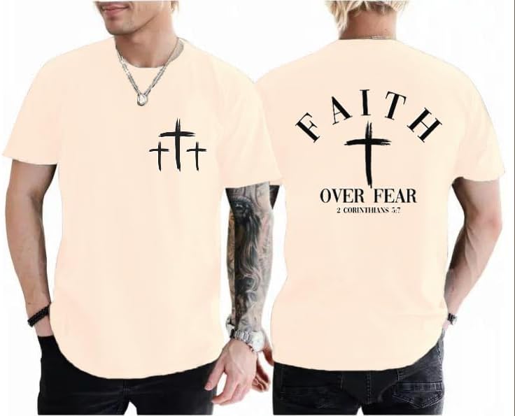 Christian Faith Over Fear Shirt for Men Cross God Jesus T-Shirt Acid Wash God Tees Vintage Bible Verse Short Sleeve Tops