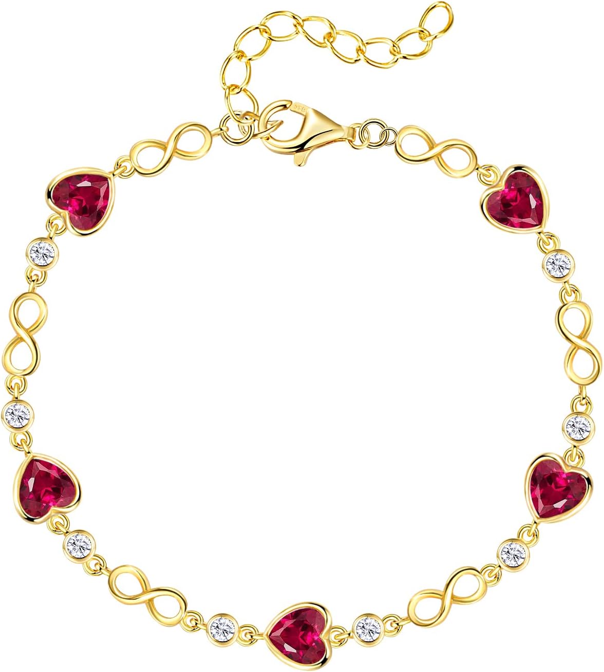 Valentine's Day Gift for Her | Sterling Silver Birthstone Bracelet for Women | Ideal Birthday Anniversary Jewelry | 14k G Plated Infinity Heart Link Adjustable Bracelet, Gifts for Wife Mom Girlfriend