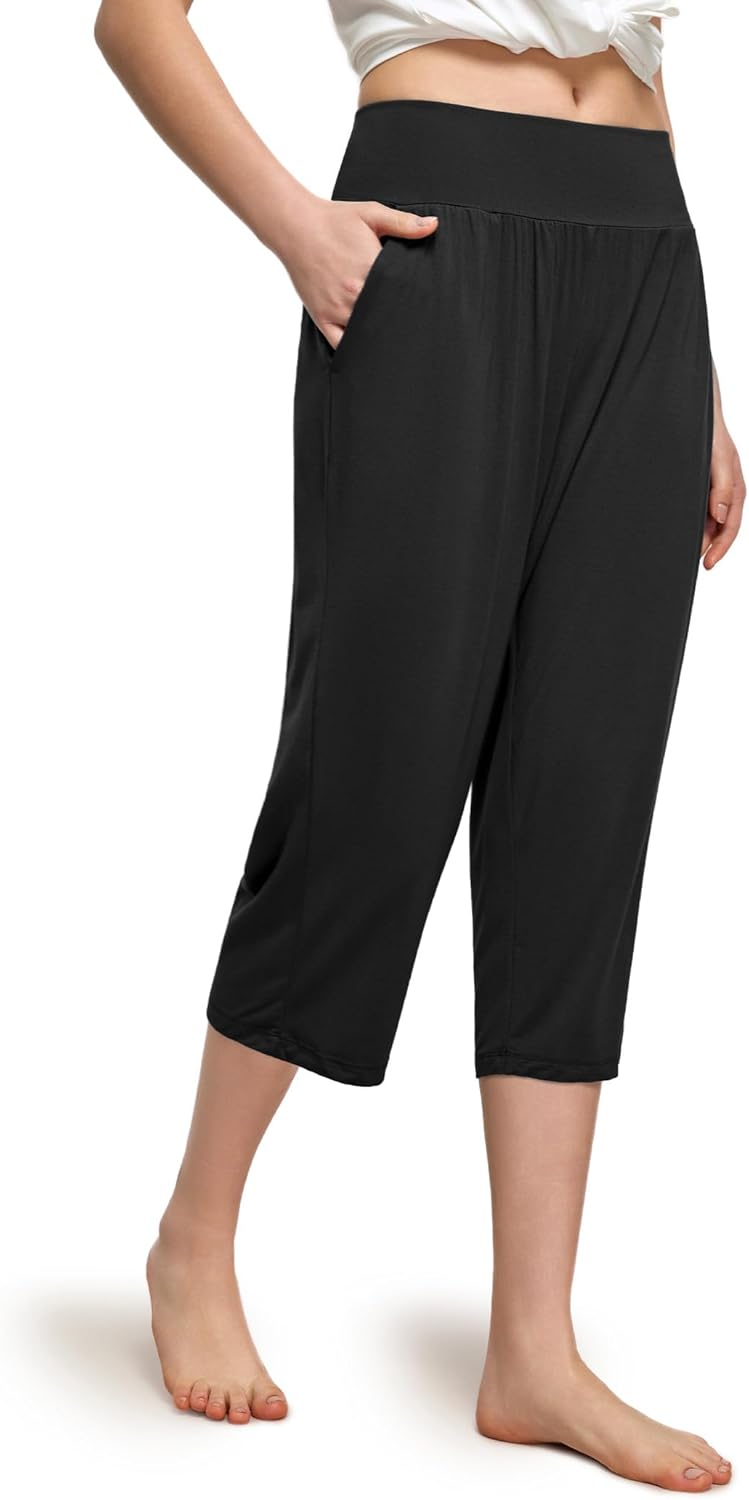 GYS Bamboo Viscose Women's Pajama Bottoms High Waist Capri Lounge Pants with Pockets
