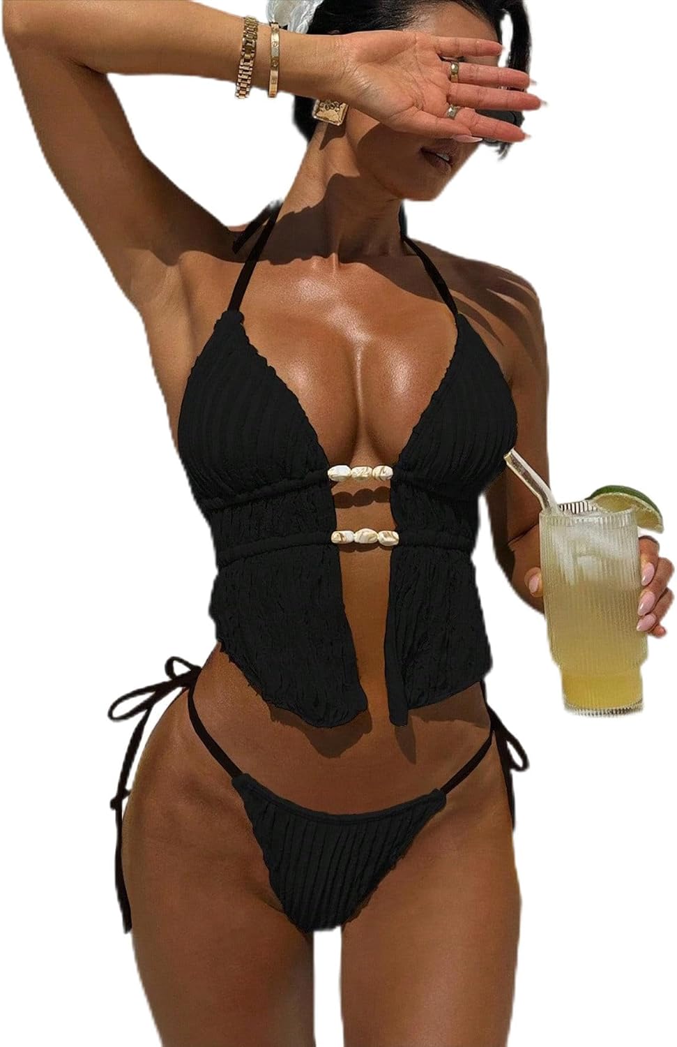 QJQ Women's 2 Piece Halter Bikini Sets Textured Backless Thong Swimsuit Triangle Tankini Cute Cheerky Bathing Suits 2026