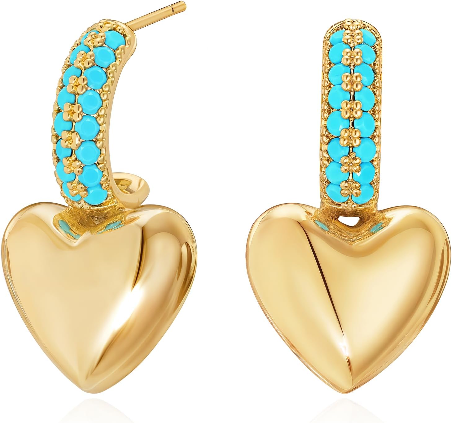 Heart Dangle Hoop Earrings for Women 14K Gold Plated Love Heart Huggies Earrings Hypoallergenic Trendy Minimalist Jewelry