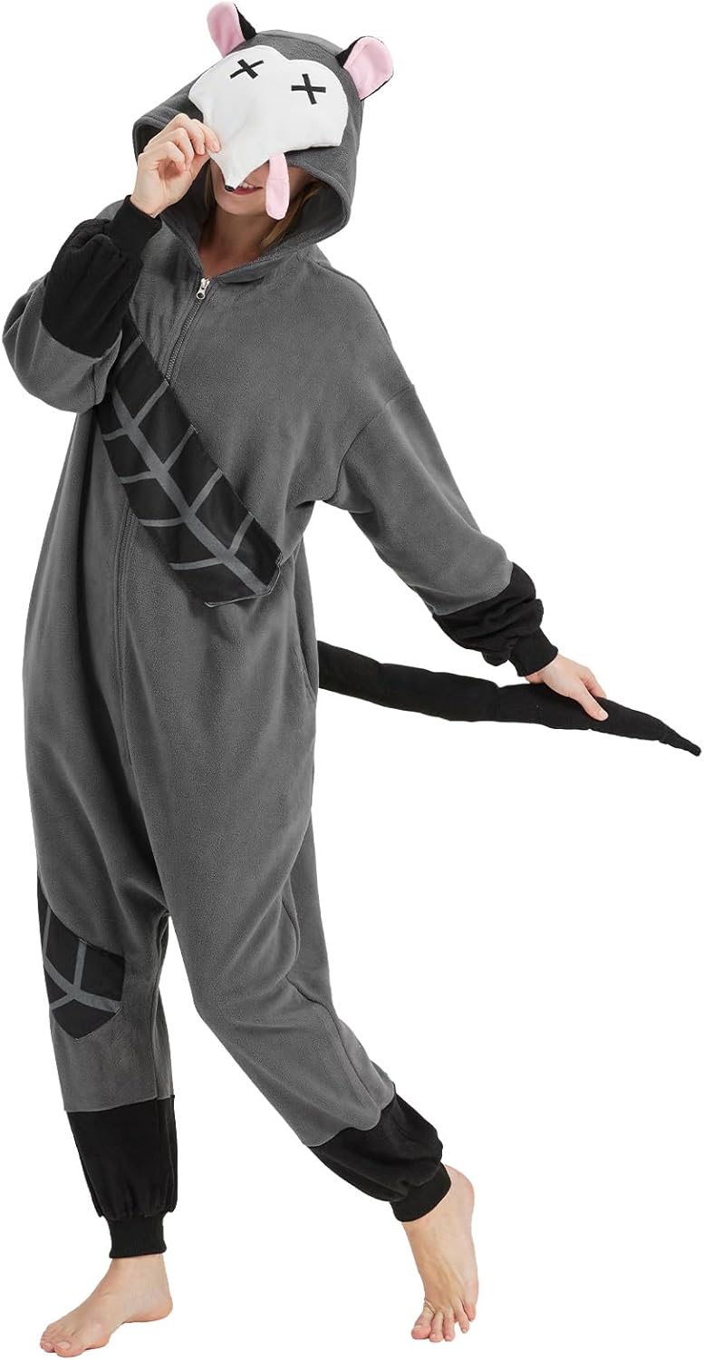 Opossum Onesie Pajamas for Adults Halloween Possum Costume Animal Cosplay One-Piece Pajamas