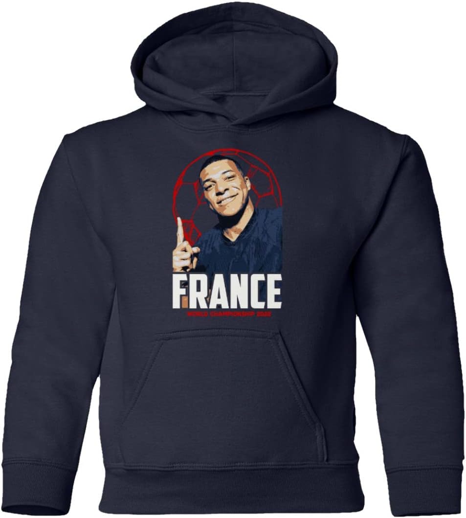 KING THREADS Mbappe GOAT France Football World Soccer 2022 Fans Youth Hooded Sweatshirt (Navy, Youth X-Large)