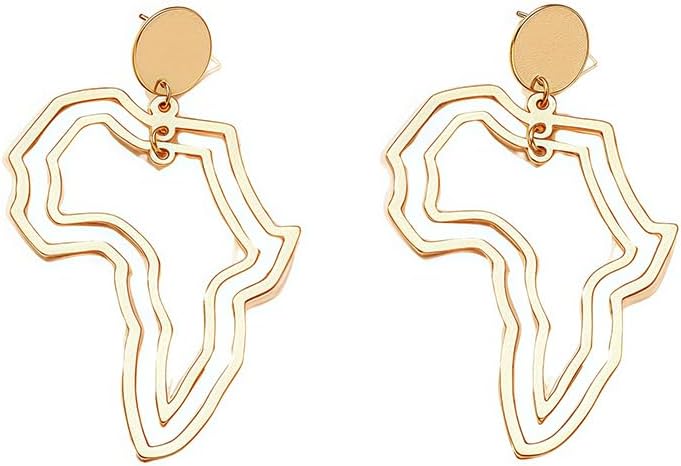 African Map Earrings for Women Gold African Continent Map Drop Dangle Earrings Geometric Hollow Out Africans Map Stud Earrings Minimalist Boho Statement Jewelry