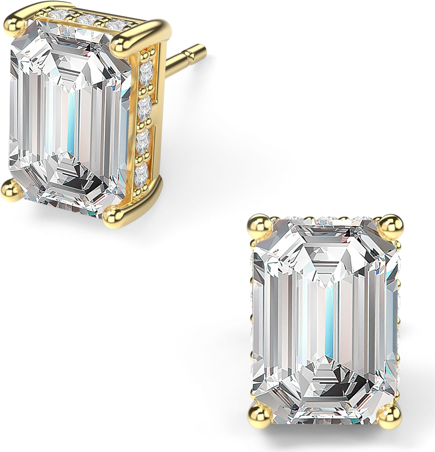 18K White Gold Plated Sterling Silver Emerald Cut Cubic Zirconia Stud Earrings Clear CZ Diamond Stud Earrings for Women Men Hypoallergenic