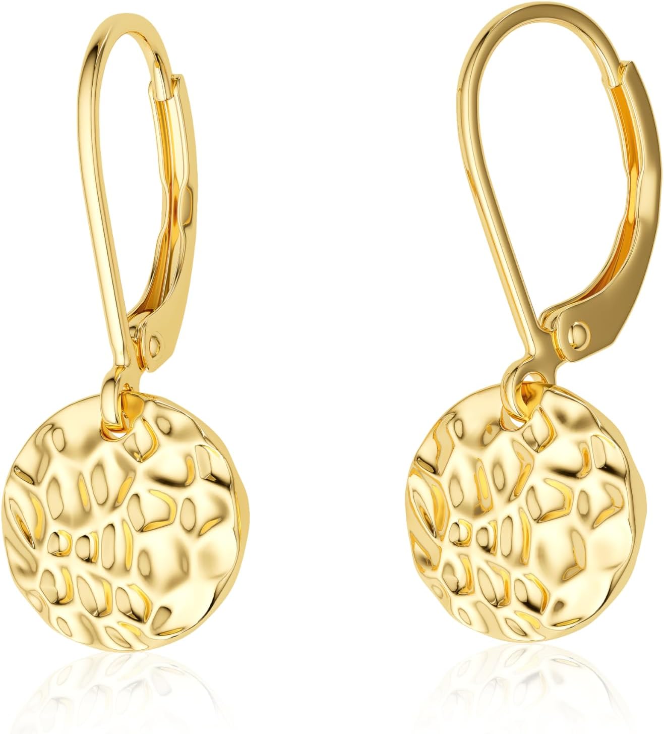 Freekiss Disc Leverback Earrings for Women: Dainty 14k Gold Plated Dangle Earrings for Women Hypoallergenic Hammered Teardrop Coin Earring Set Gold Jewelry for Womens Trendy