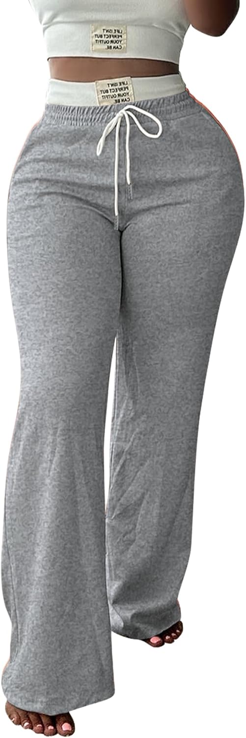 PINSV Womens Sweatpants Wide Leg High Waisted Drawstring Workout Pants Casual Comfy Loose Pants with Pockets Grey L