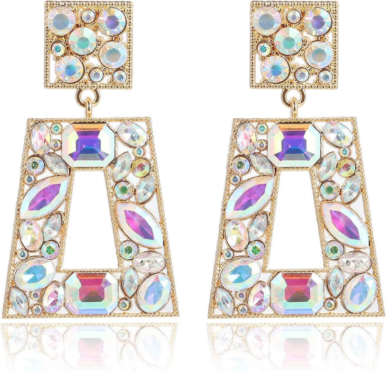 VANGETIMI Rhinestone Rectangle Statement Earrings Colorful Crystal Geometric Drop Dangle Earrings for Women Prom Party
