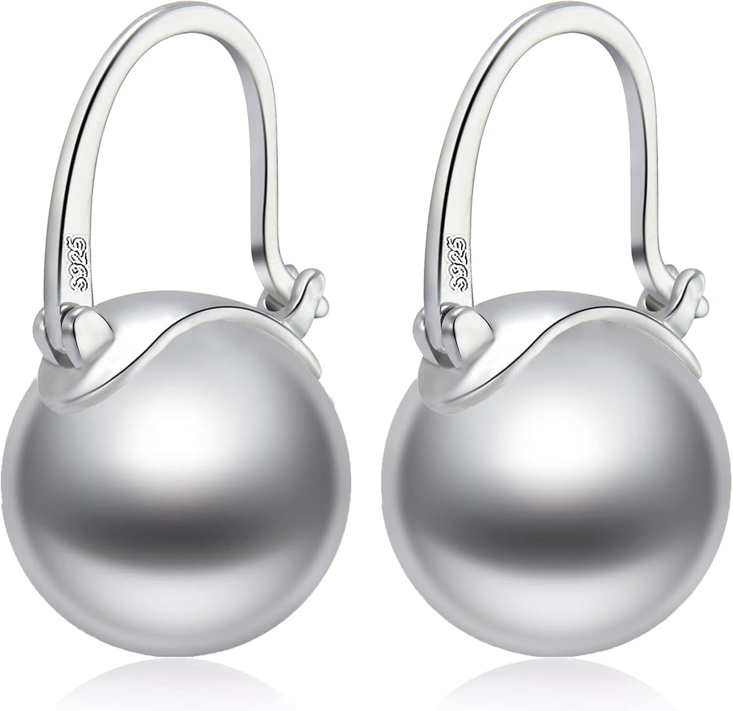 HUGE TOMATO 925 Sterling Silver Simulated Shell Pearl Earrings for Women Trendy, Big Pearl Drop Earrings Leverback Stud,Large Pearl Hoop Dangle Hypoallergenic Jewelry 14mm