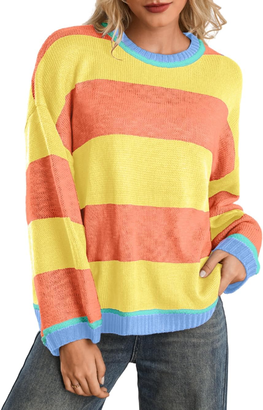 Striped Sweater Women,Color Block Oversized Sweaters,Cute Fall Knit Top Halloween Costume