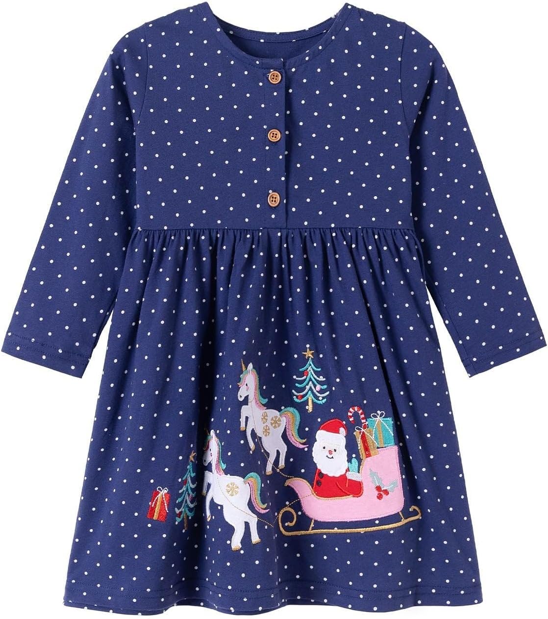 HILEELANG Toddler Girl Long Sleeve Dress Cotton Casual Jersey Shirt Playwear Applique Dress