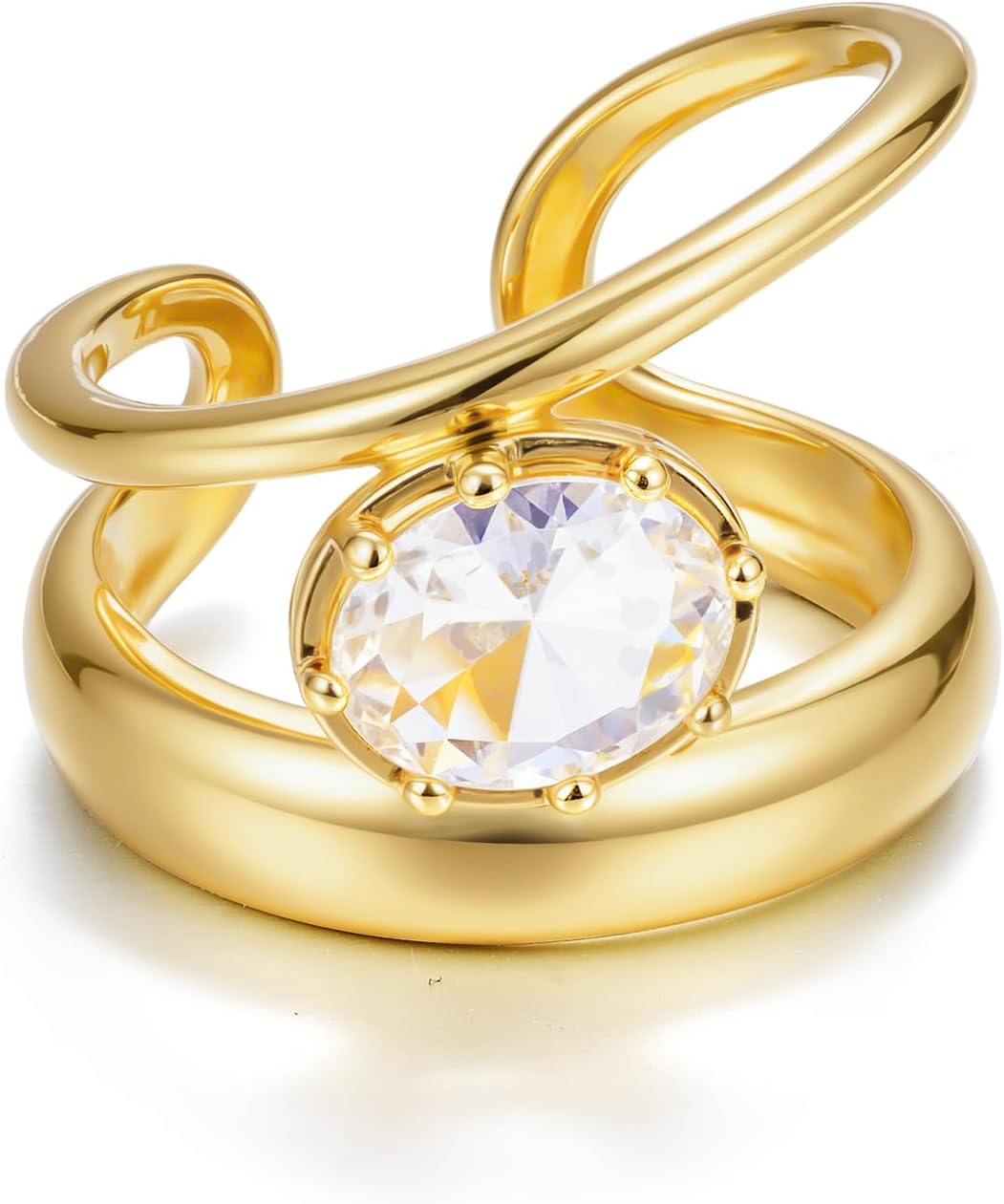 KELORIS PATH Chunky Statement Ring for Women, 14k Gold Plate Band Rings Open Adjustable Dainty Pave CZ Personalized Fashion Jewelry Gift