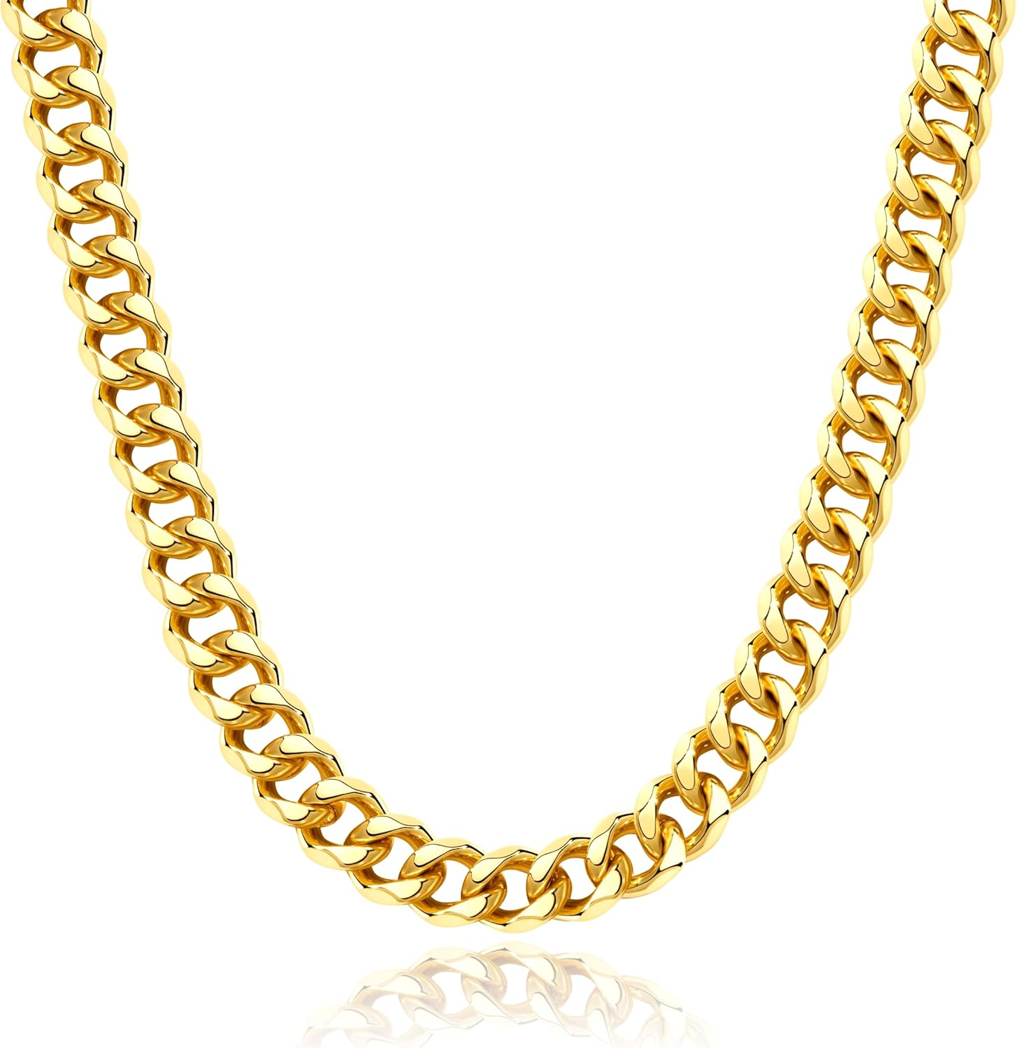 WomenGifts Cuban Link Chain Necklace for Women Men, Waterproof Stainless Steel 14K Gold Silver Plated Non Tarnish Choker, 3.5mm-11mm Widths form Dainty to Chunky, 14 16 18 Inch Lengths, Ideal Gift for Layering Stacking