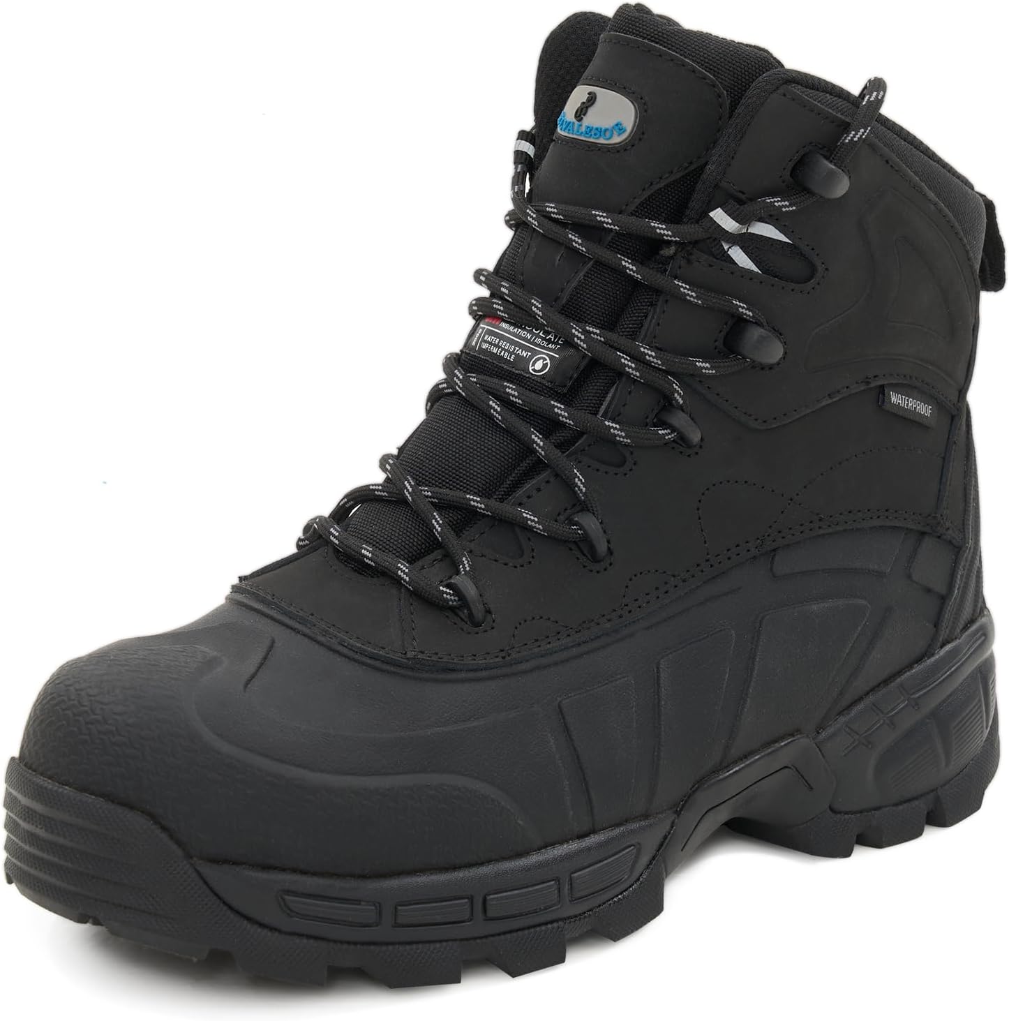 Waterproof Work Boots Composite Toe Shoes Non Slip Leather Construction Boots Puncture Proof Steel Toe Shoes Electrical Resistance Shoe Black