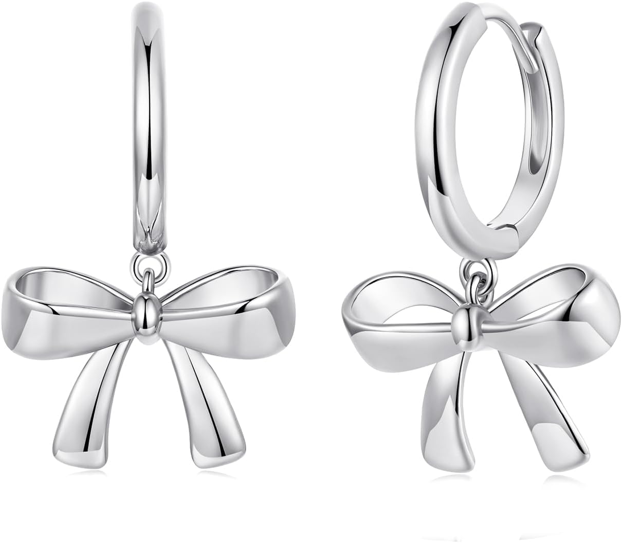14K Gold Plated 925 Sterling Silver Posts Bow Hoop Earrings for Women, Cute Bowknot Hypoallergenic Drop/Dangle Huggie Earrings Valentine Gift