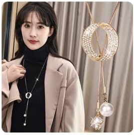 Sither Hoop Pendant Necklace for Women Long Round Pendant Necklace Gold Sweater Chain Necklace Wedding Dressy Necklace Jewelry for Evening Party Christmas Gift