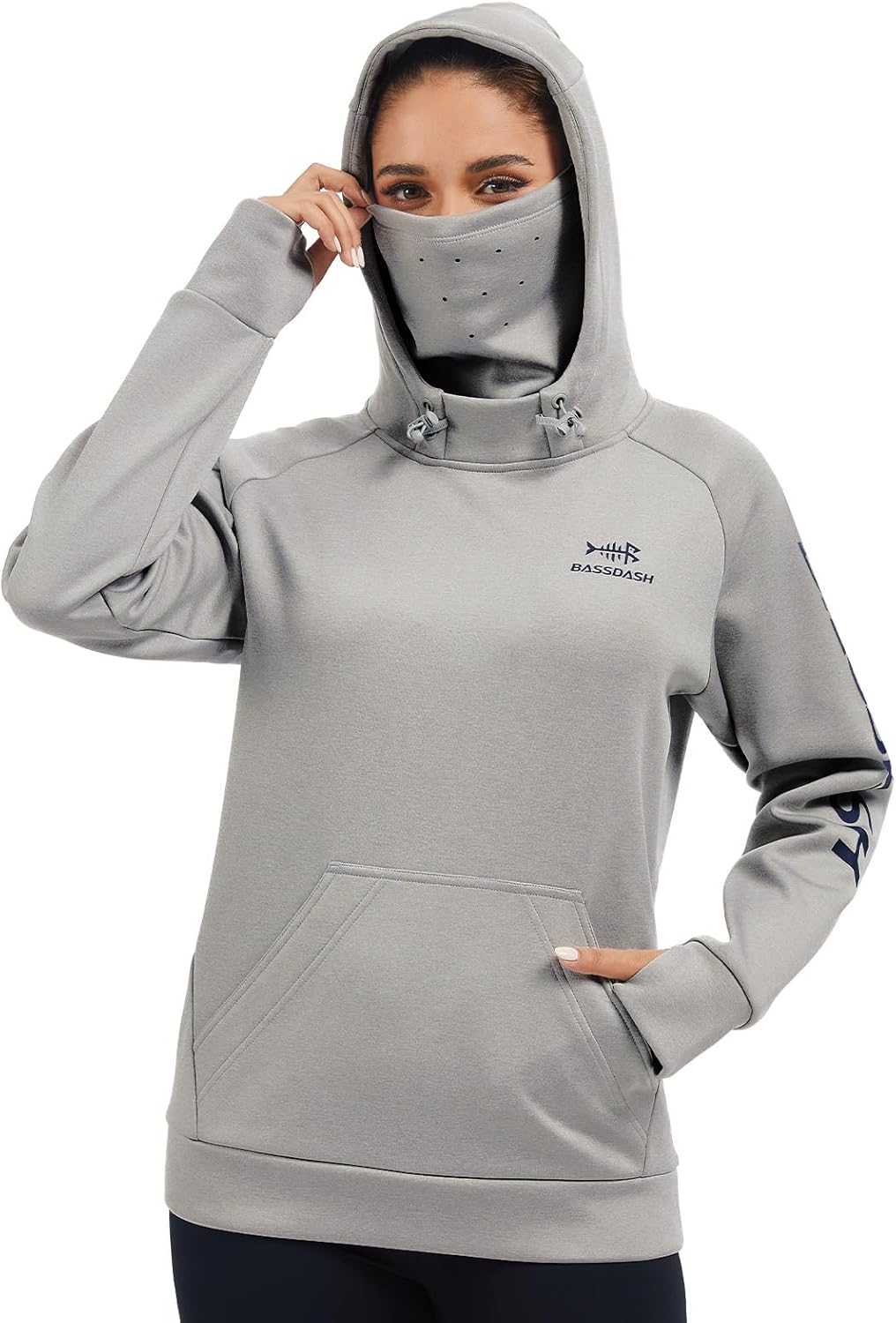 BASSDASH Women’s Fleece Fishing Hoodie with Neck Gaiter Water Resistant Performance Hiking Sweatshirt Pullover