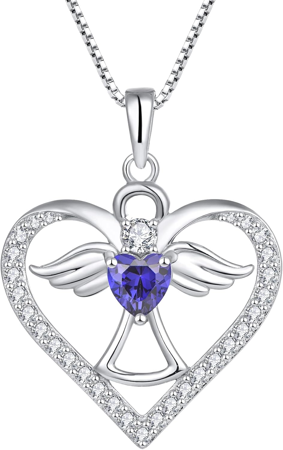 FJ Guardian Angel Necklace 925 Sterling Silver Heart Angel Wings Pendant Birthstone Jewelry for Women