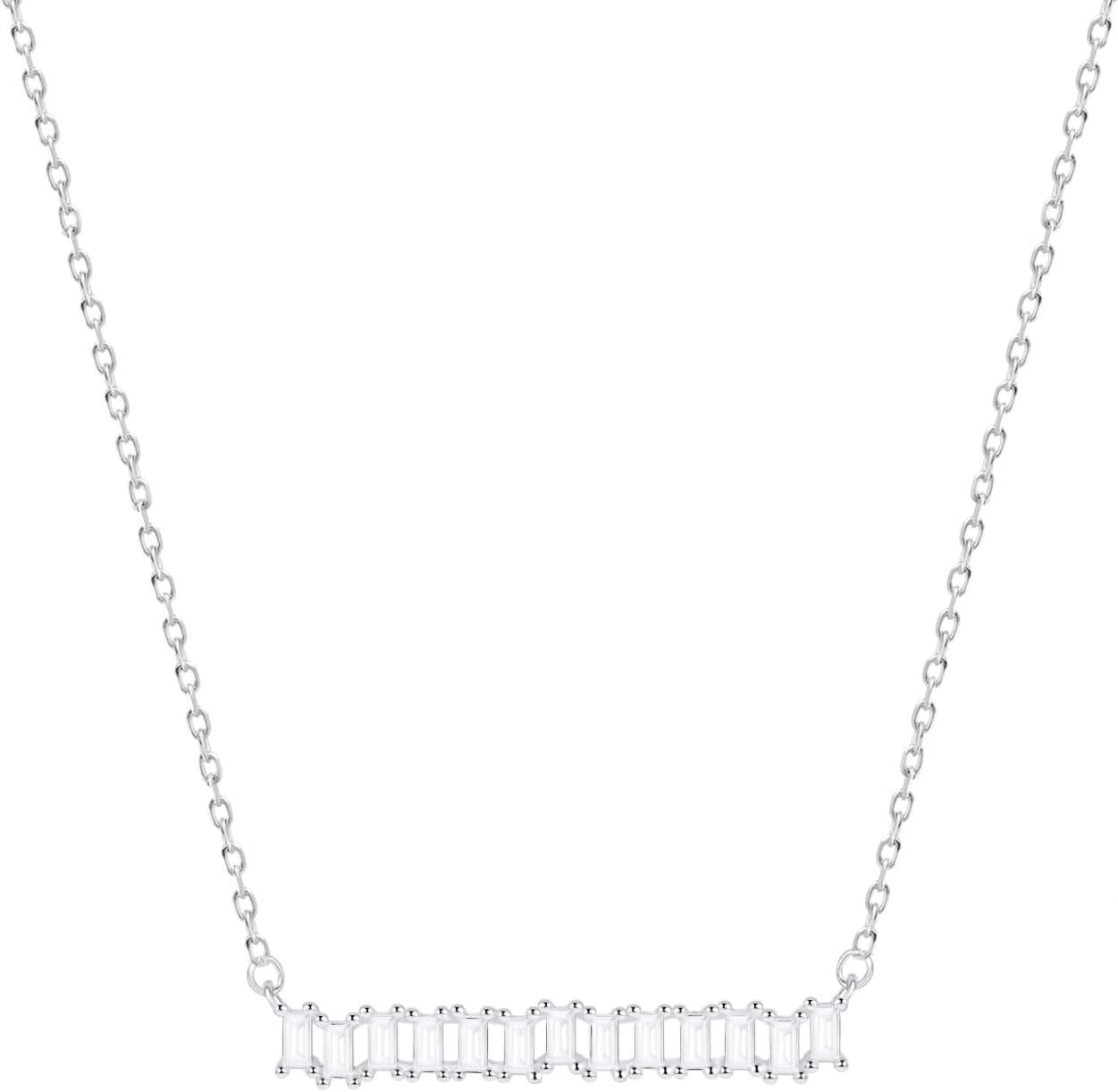 Necklace for Womens Baguette-Cut Bar Dainty Pendant Women Necklaces Sterling Silver Modern Fashion Jewelry