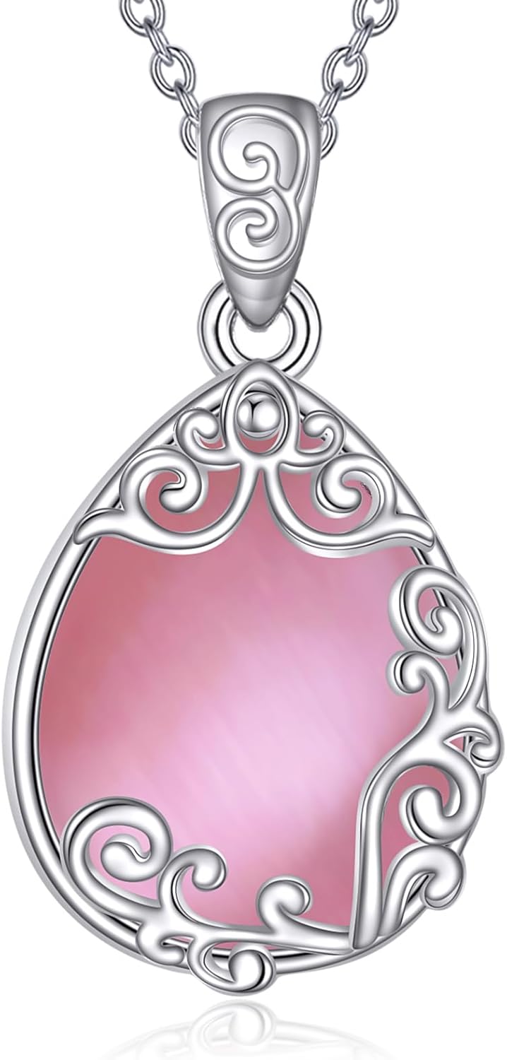 YAFEINI 925 Sterling Silver Moonstone Necklace Filigree Teardrop Pendant Necklace Jewelry for Women
