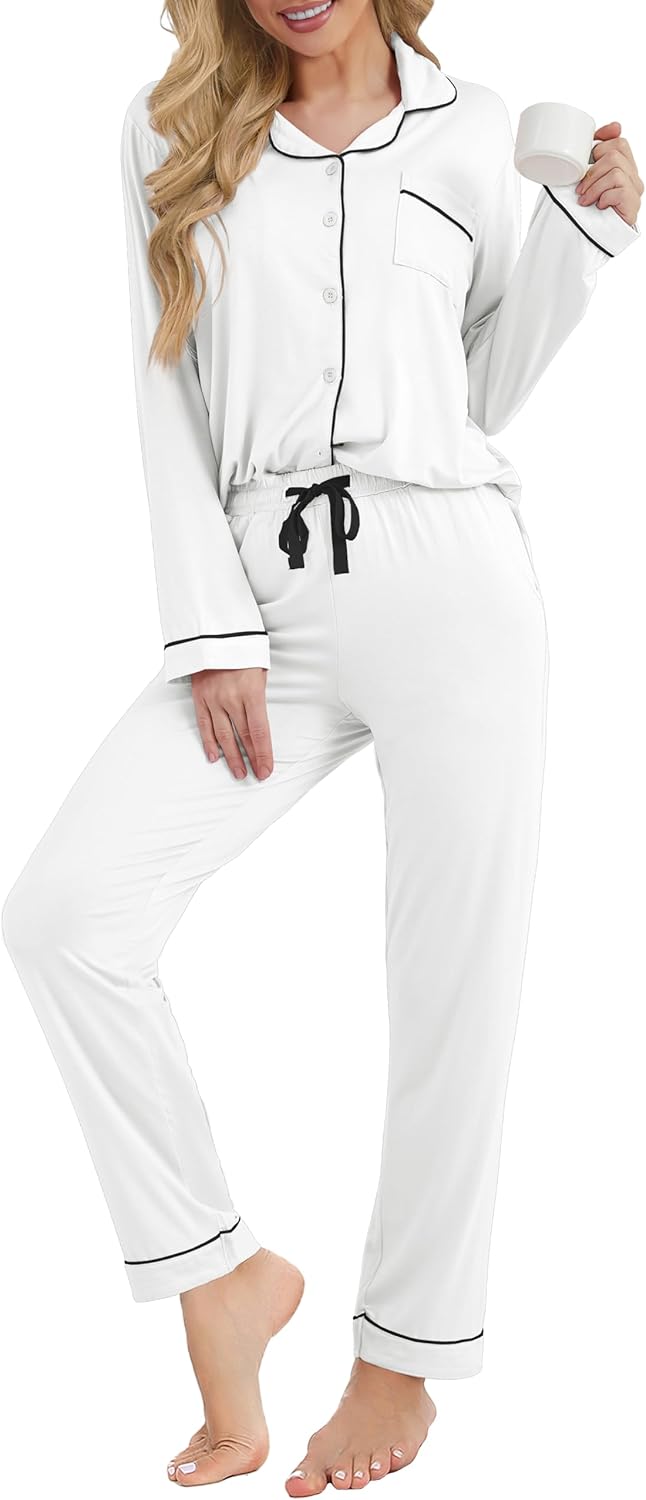 Women's Pajama Sets Long Sleeve Button Down Sleepwear Soft Pjs Lounge Sets for Women 2 Piece