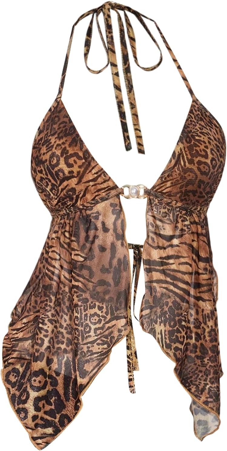 Floerns Women's Y2k Cheetah Halter Tops Sleeveless Cut Out Tie Backless Going Out Cami Top