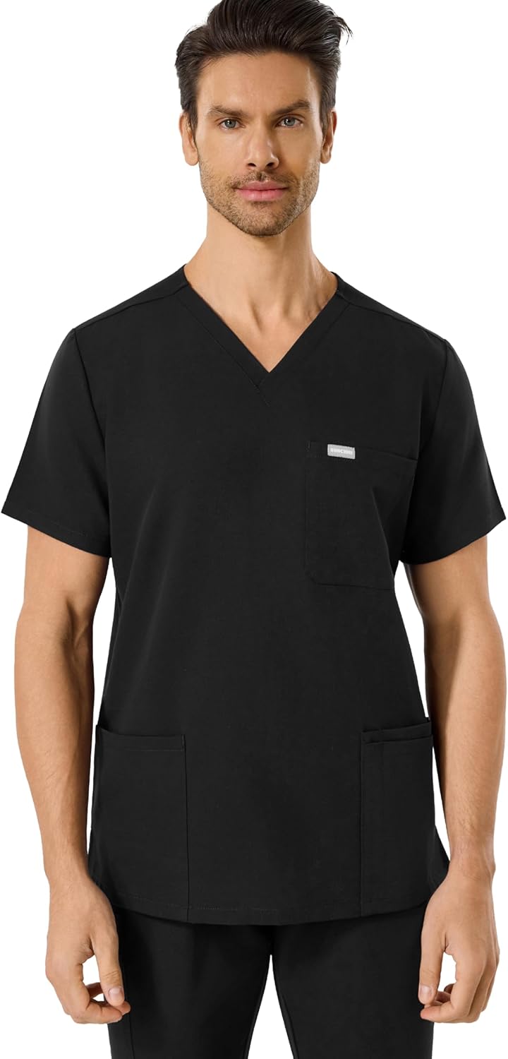 Mens Scrub Top with 4 Pockets, Modern V-Neck Scrubs Top, 4-Way Stretch, Soft, Durable, Breathable, Moisture-Wicking