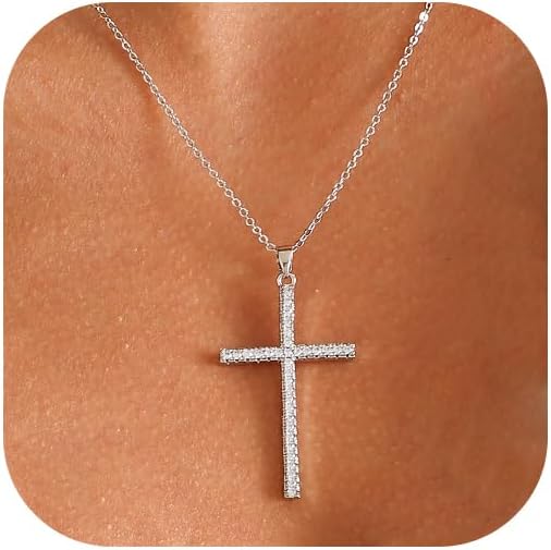 Cross Necklace for Women, 14K Gold Plated Cubic Zirconia Cross Pendant Necklace, Trendy Christian Jewelry Gifts for Baptism First Communion Christmas