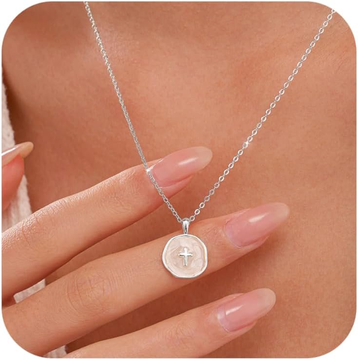 Dainty Cross Necklace for Women 925 Sterling Silver Christian Faith Necklaces 14K Gold Plated Circle Crucifix Pendant Necklace Religious Jewelry Baptism Easter Christian Gifts
