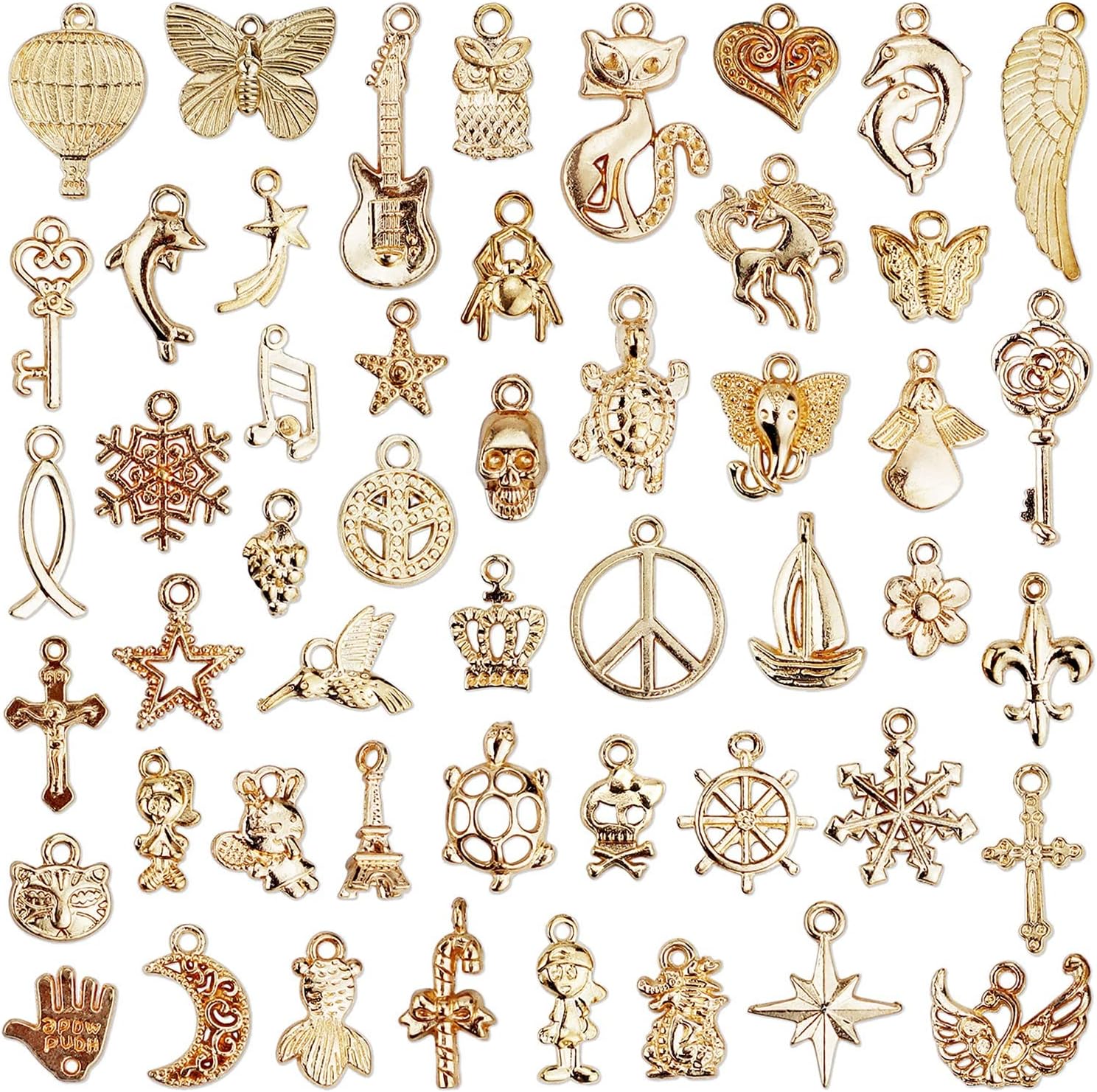 JIALEEY Wholesale Bulk 50PCS Mixed KC Gold Charms Pendants DIY for Necklace Bracelet Jewelry Making and Crafting