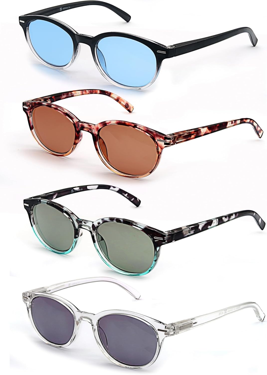 Reading Sunglasses Womens Round Readers Sunglasses +2.25 for Small Head/Petite Face Sun Readers Lightweight&Comfortable Fit 4 Pack