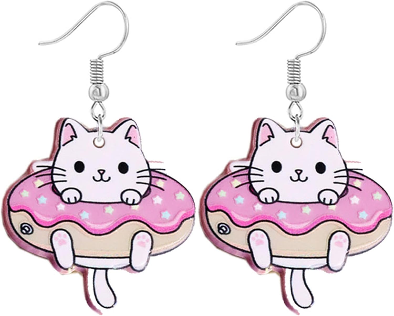 Book Cat Earrings for Women Trendy Acrylic Cute Kawaii Donut Cat Dangle Earrings Handmade Lightweight Aesthetic Cartoon Cat Statement Drop Earrings Jewelry Gifts