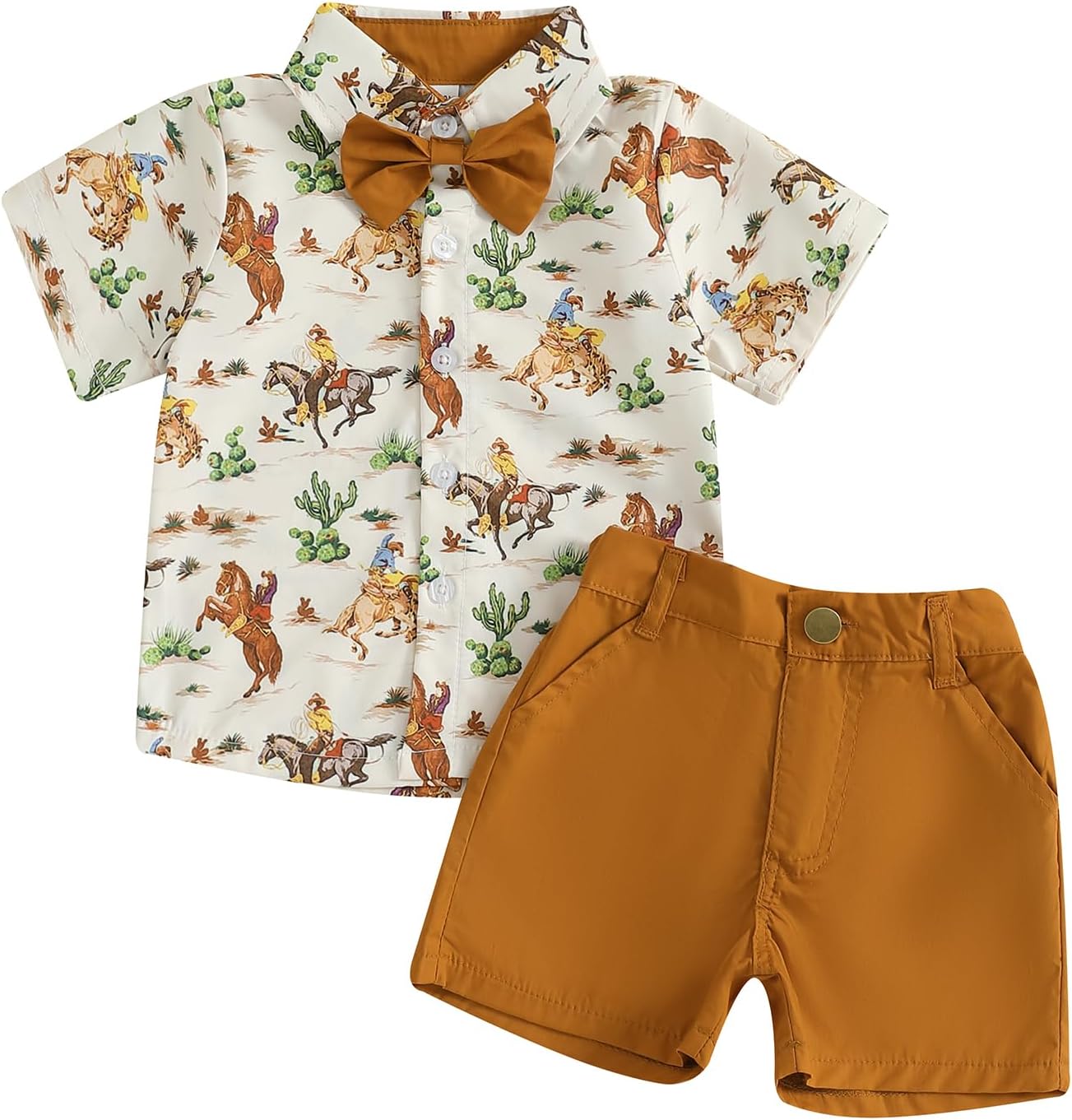 Toddler Boy Western Summer Clothes Riding Horse Button Down Short Sleeve Shirt and Shorts Set Country Baby Clothes
