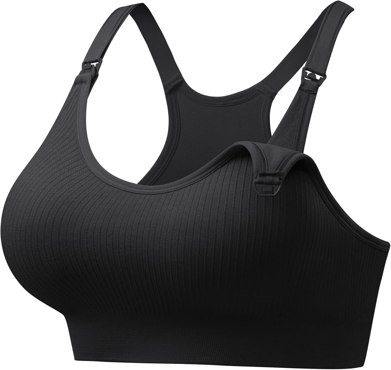 Angelhood Nursing Sports Bras for Breastfeeding, Ribbed Support Maternity Bra Wireless Seamless Sleep Bralette for Pregnancy