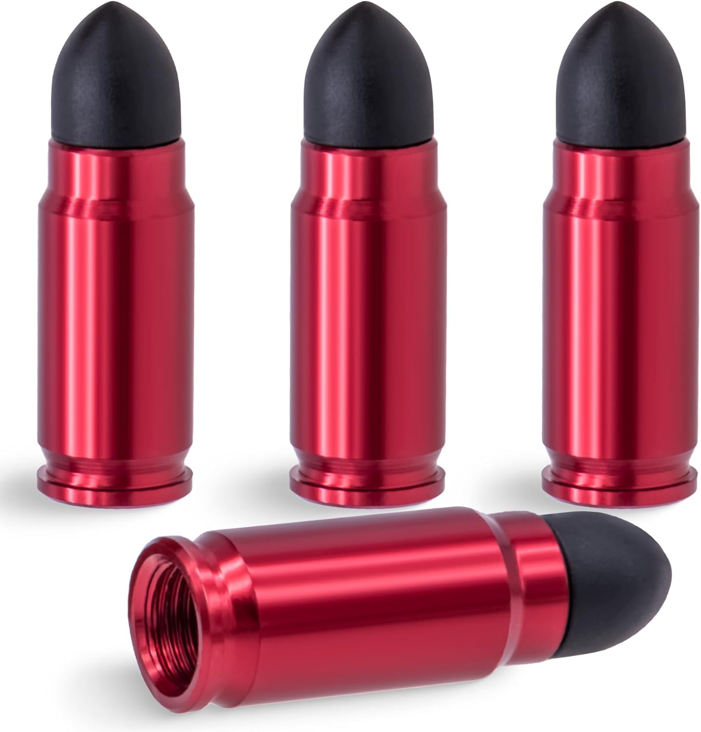 4PCS Bullet Style Tire Valve Stem Caps, Plastic Tip Tire Valve Caps, Aluminum Alloy Dustproof Waterproof Valve Caps Cover fits Cars, Trucks, Bikes, Motorcycles and Bicycles(Red)
