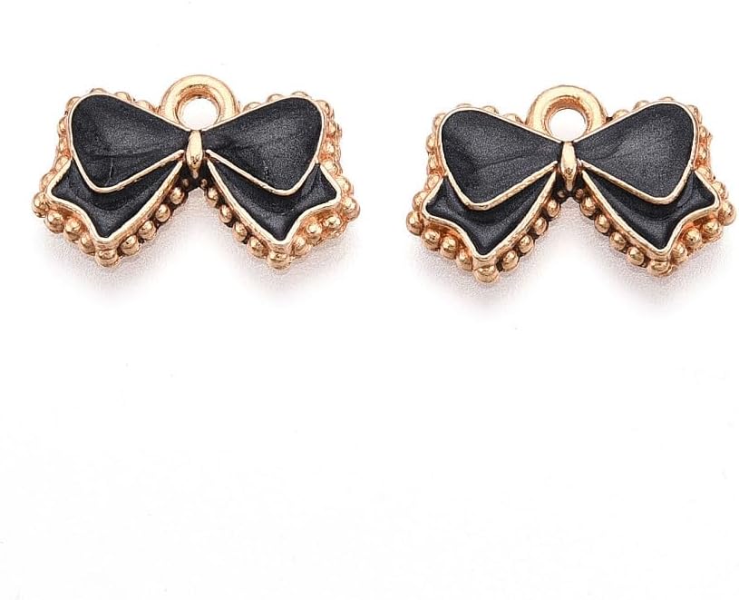 DanLingJewelry 100Pcs Craft Supplies Black Bow Jewelry Charms Mini Cute Bowknot Pendants Charms for DIY Bracelets Earrings Necklace 10x16x2mm