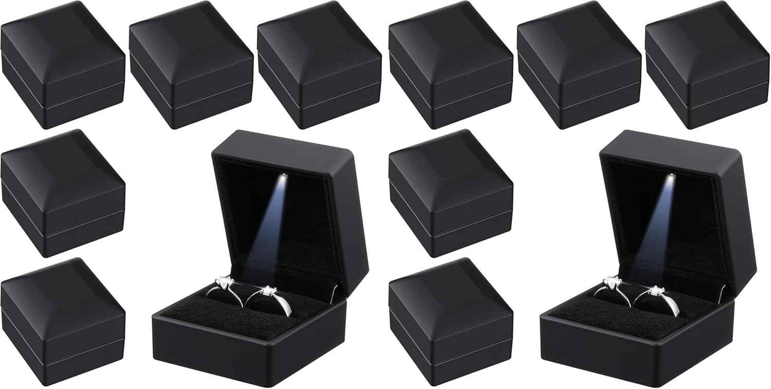 - Sufficient Quantity: you will receive 12 pieces of engagement ring boxes in black, each has an LED light inside, exquisite color and sufficient quantity can meet your daily use and replacement needs; Note: the jewelry is not included in the package